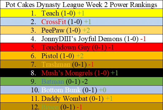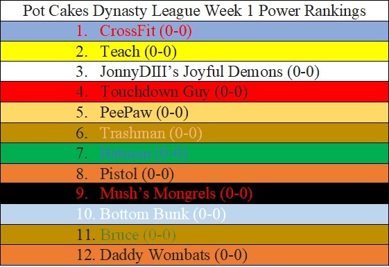 Good morning everyone, welcome to the Pot Cakes Dynasty League Week 3 Preview. We got a lot going on so we are going to fly through this week. No real good matchups, so why don’t we put the bad teams in the spotlight. We have our PCDL GOTW, matchups and an all new power rankings. Let’s dive into it.